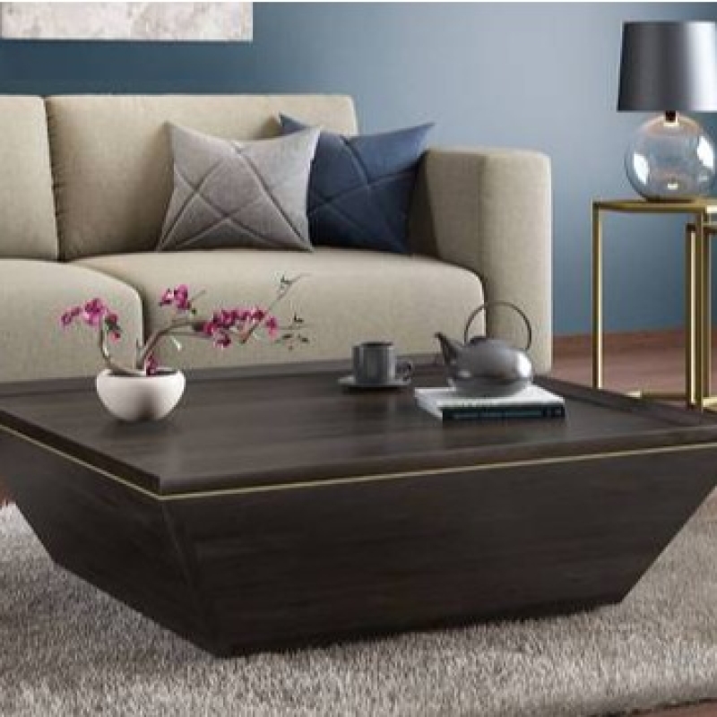 Mesa de café de madera maciza rectangular de Taarkashi en acabado de nogal americano
