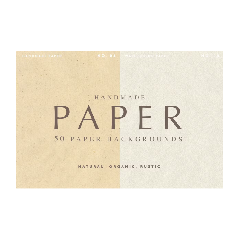 The Handmade Paper Collection is filled with many unique papers. There are 50 genuine handmade paper textures made to complement your traditional or digital projects. Perfect as an addition to your mockup products, branding, and web design. These papers work great in Photoshop and Procreate, you can play with overlay layers and clipping masks to add interest to any digital or handmade elements.