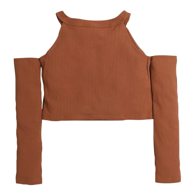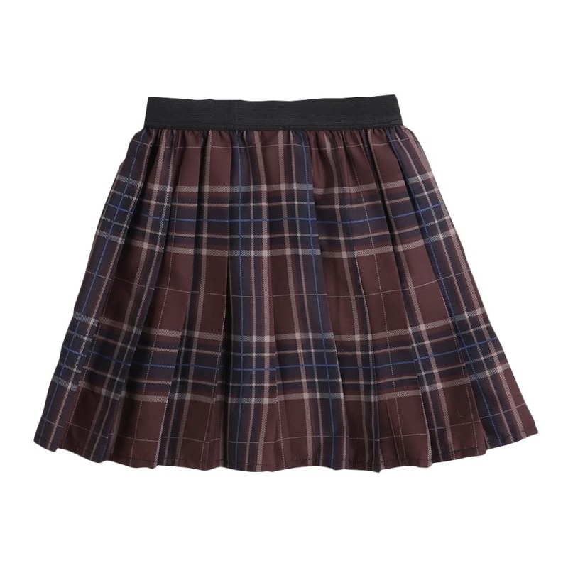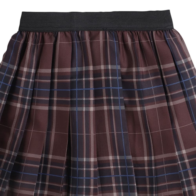 Hopscotch Girls Polyester Checkered Blouse And Skirt Set in Brown Color
