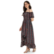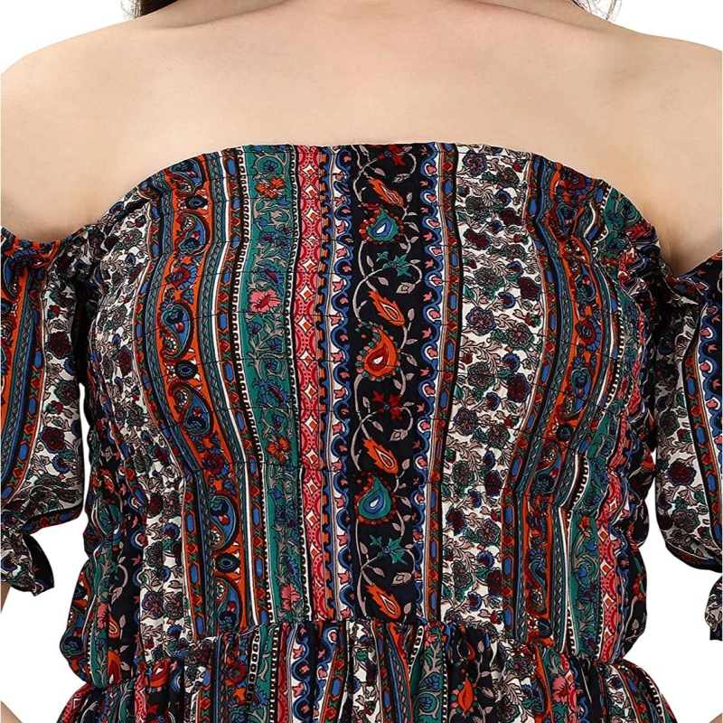 Offshoulder dress with puffed sleeves, smocked bodice and ruffles wrap skirt