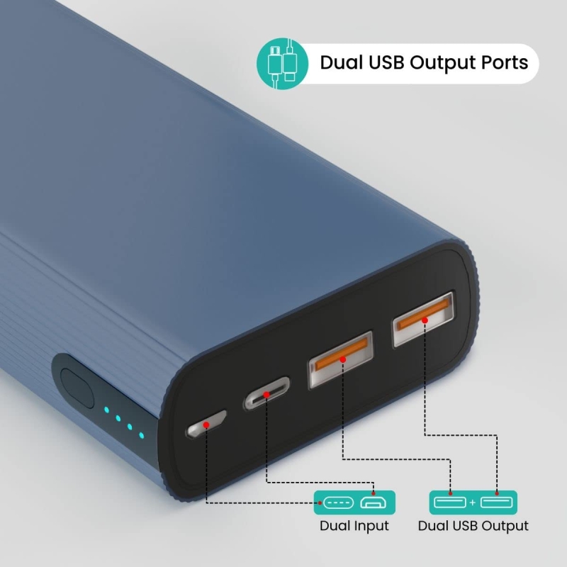 • [DUAL INPUT PORTS]: The power bank has dual input ports that let you plug in your devices that have to be charged. The ports are built with precision, to ensure that the charging process is absolutely seamless!