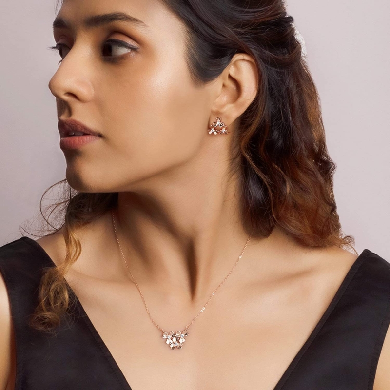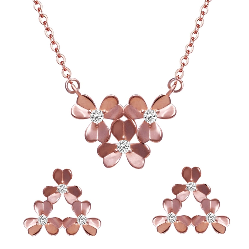 Rose Gold Blooming Flower Set with Necklace & Earrings