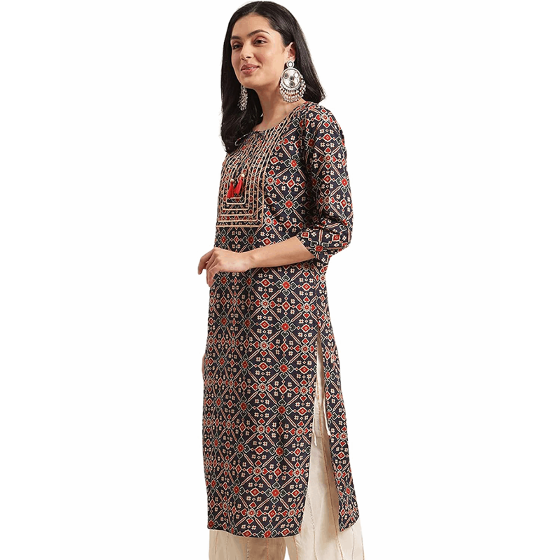 Rytras Women Cotton Printed Straight Kurti