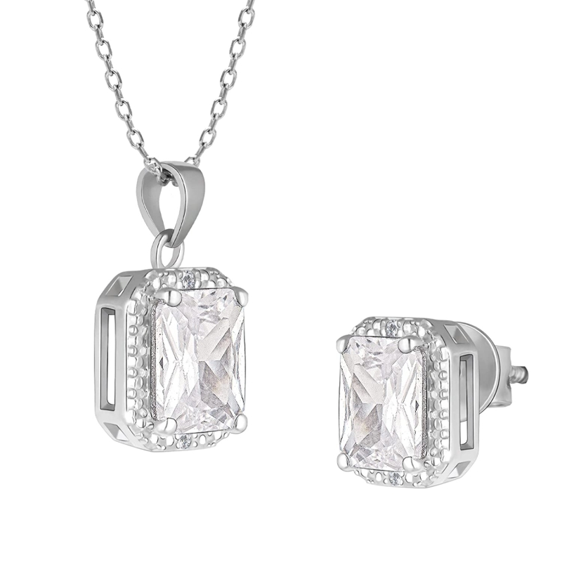 • PRODUCT DETAILS : Made of 925 Silver, Contains a pendant with a link chain and a pair of earrings, Charm: 1.9 cm x 0.85 cm, Length of necklace is 43 cm with 4 cm adjustable portion, Earring dimension: 1 cm x 0.85 cm. Rhodium finish to prevent tarnish